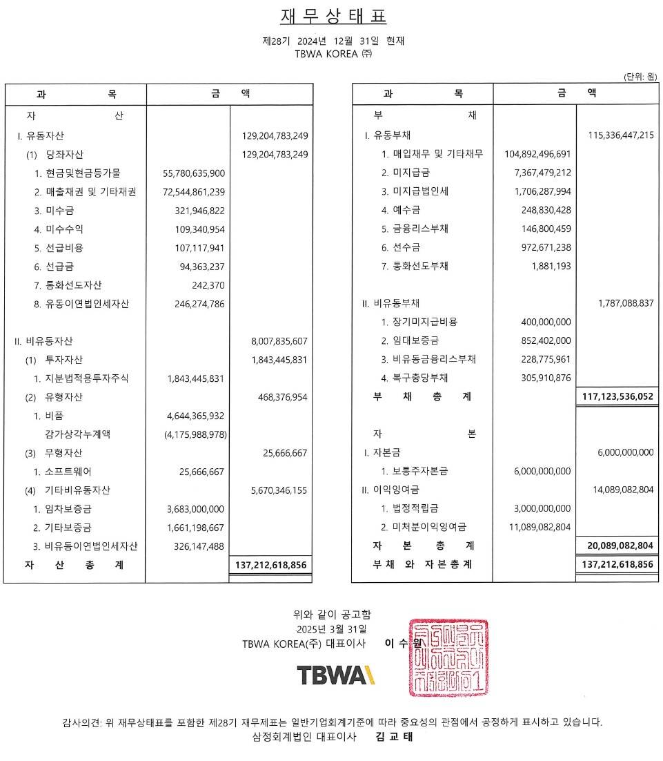 TBWA KOREA 2024 결산공고